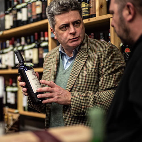 Con la stessa professionalità e passione è pronto a suggerire e proporre etichette ad ogni singolo cliente, dal regalo che stupisce alla bottiglia per una cena tra amici.